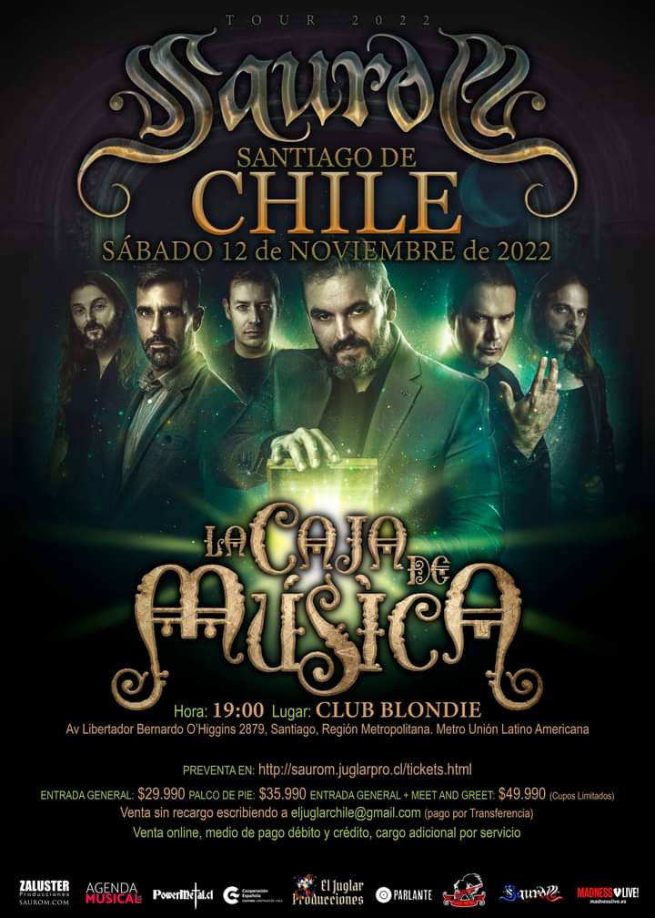 Considerada cómo una de las mejores bandas de Folk Metal de España, Saurom Sitio Oficial se hará presente nuevamente por tierras chilenas, así cómo a lo largo de Latinoamérica. La agrupación gaditana consta con grandes trabajos discográficos, entre ellos «Música» (2020), «Mester de Juglaría» (2021), este último a contado con una gran variedad de músicos de todo el mundo. Con 25 años de trayectoria, Saurom llega para celebrarlo con «La Caja de Música».